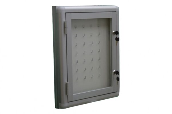 Gablota na klucze, dwuskrzydłowa, otwierana na boki z podwójnym dnem o grubości 6cm Symbol gabloty: KA7K Gablota na klucze, dwuskrzydłowa, otwierana na boki z podwójnym dnem KA7K jest wykonana z profili aluminiowych Grupy Kęty...