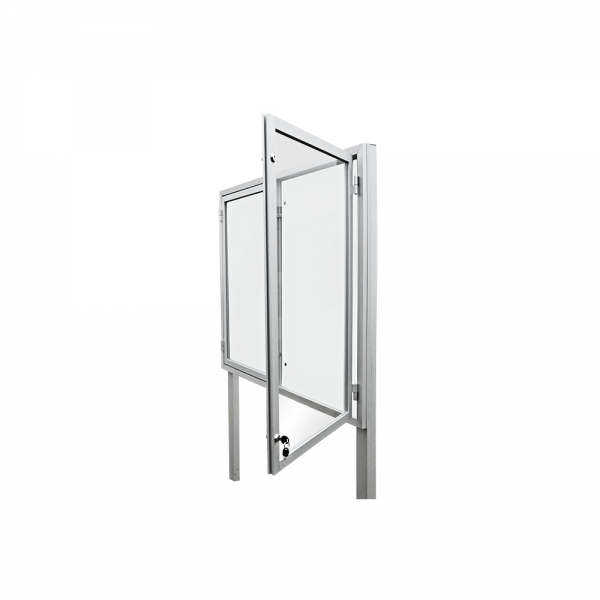 Gablota, wolnostojąca, zewnętrzna jednostronna, aluminiowa, dwuskrzydłowa otwierana na boki o grubości 3,2cm