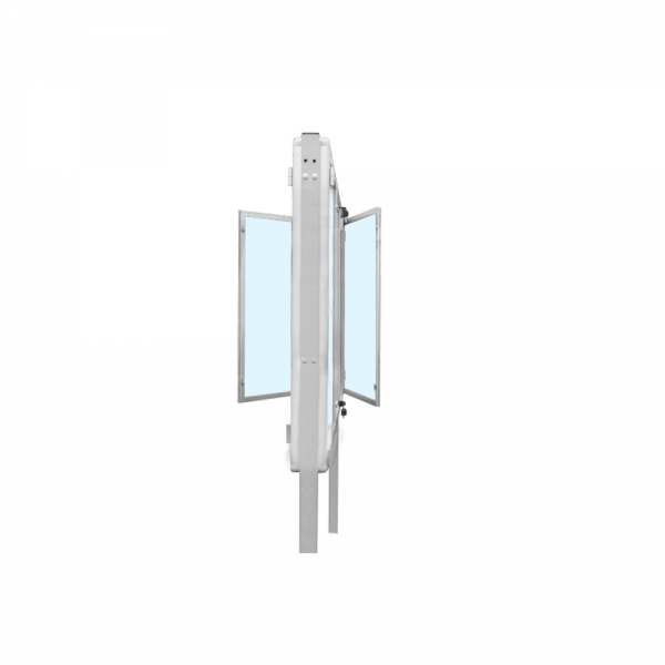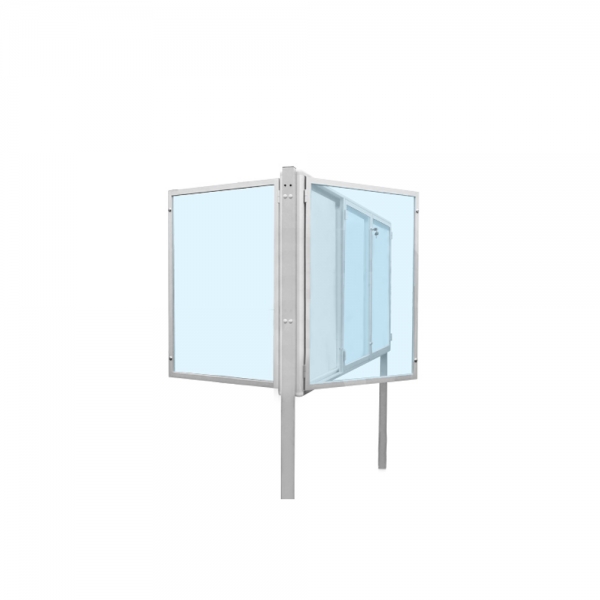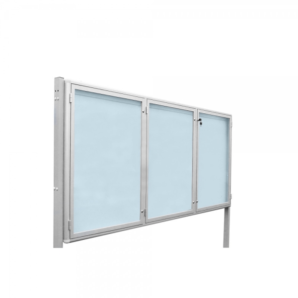 Gablota wolnostojąca, aluminiowa zewnętrzna, dwustronna trzyskrzydłowa otwierana na boki o grubości 13cm