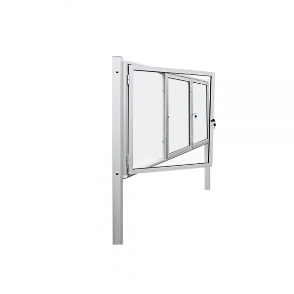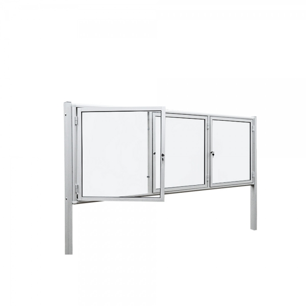 Gablota wolnostojąca, zewnętrzna jednostronna, aluminiowa, jednostronna aluminiowa, trzyszkrzydłowe otwierana na boki o grubości 6cm