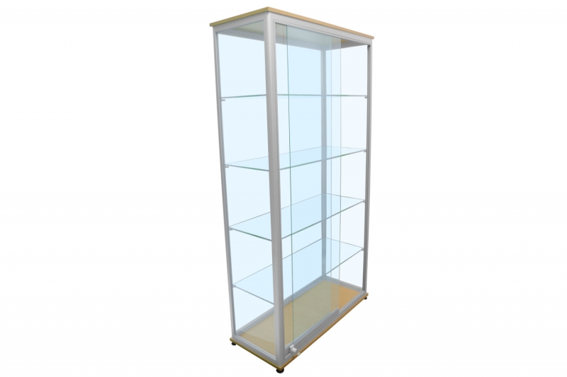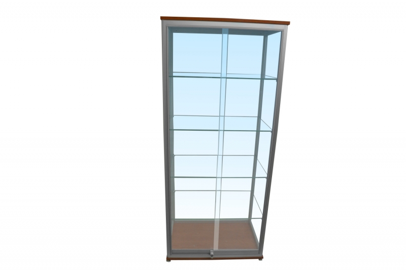 Witryna stojąca z systemem drzwi przesuwanych WS2AK jest przeznaczona do ekspozycji towarów. Wykonywana jest z profili aluminiowych Grupy Kęty S.A anodowanych standardowo na kolor biały. System drzwi przesuwnych, zamykana jest na zamek patentowy. Ściany boczne i ściaba tylna jest wykonana ze szkła o grubości 4mm(szkło można zastąpić płytą HDF). Dno i wierch gabloty wykonany jest z eleganckiej płyty meblowej. Półki szklana o regulowanej wyskości. Istnieje możliwość zamontowania oświetlenia co jest opcją dodatkową.
